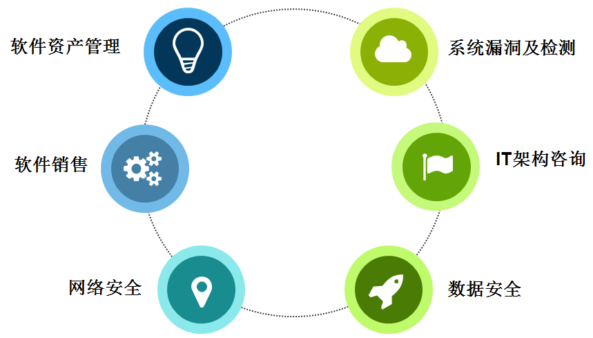 作为微软的核心代理,微软软件产品是我司的主营业务之一,从产品销售,到售后培训以及相关维护保养我司已形成了一整套完善的销售服务链。在此基础上公司与IBM、Auto CAD、Adobe、华为、绿盟、深信服等国内外大型厂家合作,针对用户需求构架3全方位无漏缺的网络数据安全防护体系。得益于公司集成部门与开发部门共同的开拓创新,新一代IT架构咨询以及相应软件体系开发服务也为客户所认可,成为公司的核心业务。